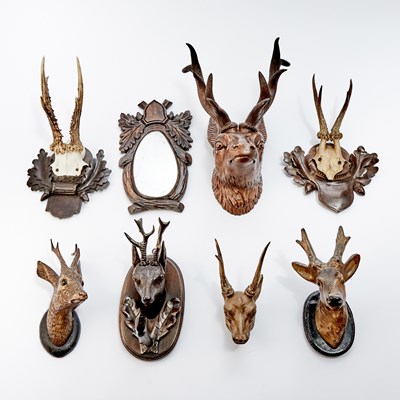 Group of Black Forest Style Carved Wood Deer and Antler Form Wall Decorations
