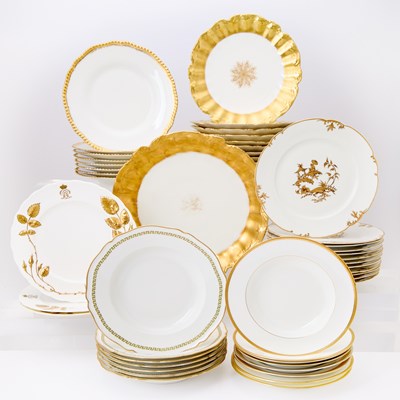 Group of Gilt Decorated Porcelain Plates and Bowls