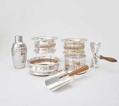 Group of Silver Plated and Metal Dessert Wares and Barware