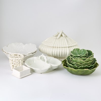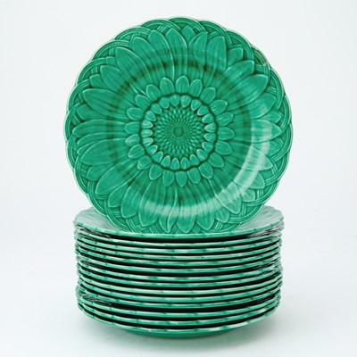 Set of Fifteen Wedgwood Green Glazed Majolica 'Sunflower' Plates
