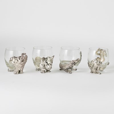 Set of Four Arthur Court Aluminum and Blown Glass 'Safari' Beakers