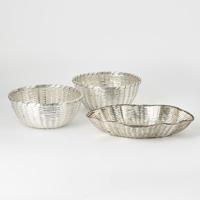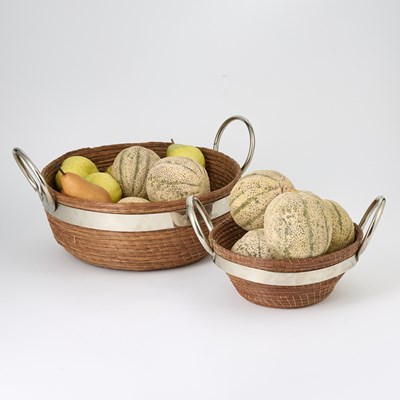 Two Chrome Plated Ring Handled Fiber Baskets with Composite Fruit