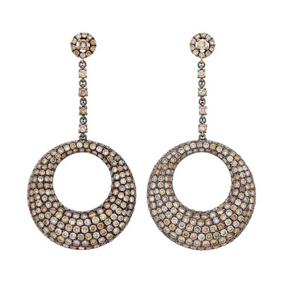 Pair of Blackened Gold, and Colored Diamond Hoop Pendant-Earrings