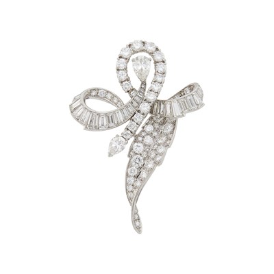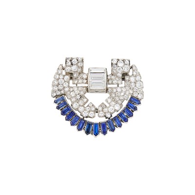 Platinum, Diamond and Synthetic Sapphire Clip-Brooch