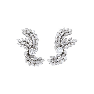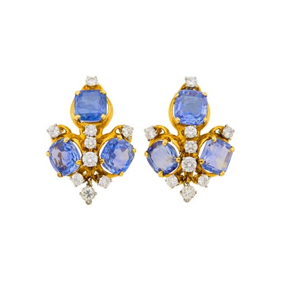 Pair of Gold, Platinum, Sapphire and Diamond Earclips