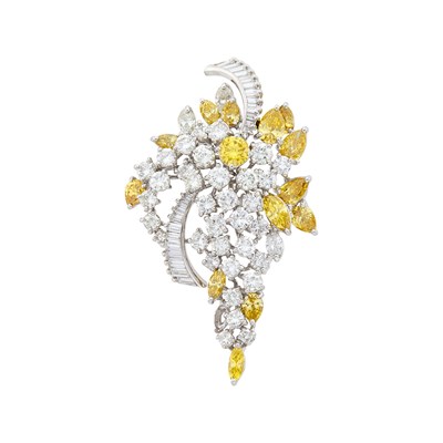 Van Clief Platinum, Diamond and Treated Yellow Diamond Brooch
