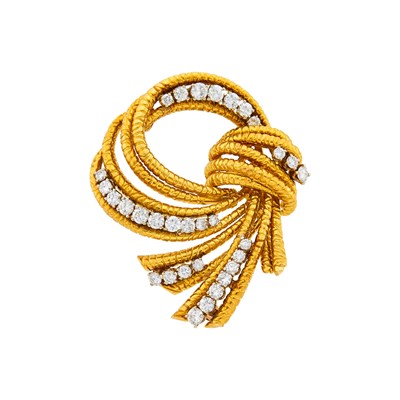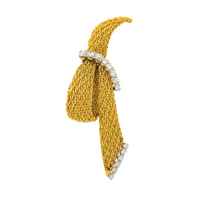 Two-Color Gold and Diamond Mesh Bow Clip-Brooch