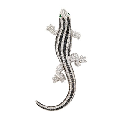 White Gold, Diamond and Black Diamond Lizard Clip-Brooch