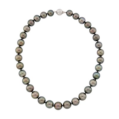 Tahitian Gray Cultured Pearl Necklace with Fluted White Gold and Diamond Ball Clasp