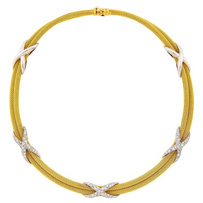 Double Strand Two-Color Gold and Diamond Braided Mesh Necklace