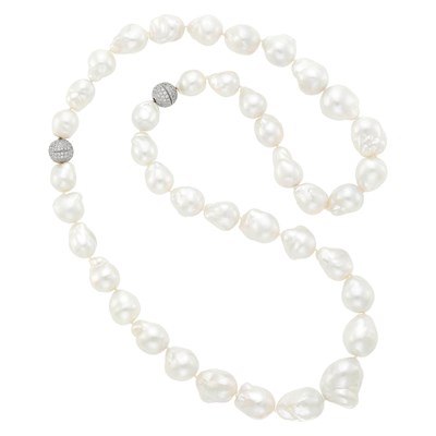 South Sea Cultured Pearl Necklace with White Gold and Diamond Ball Clasp