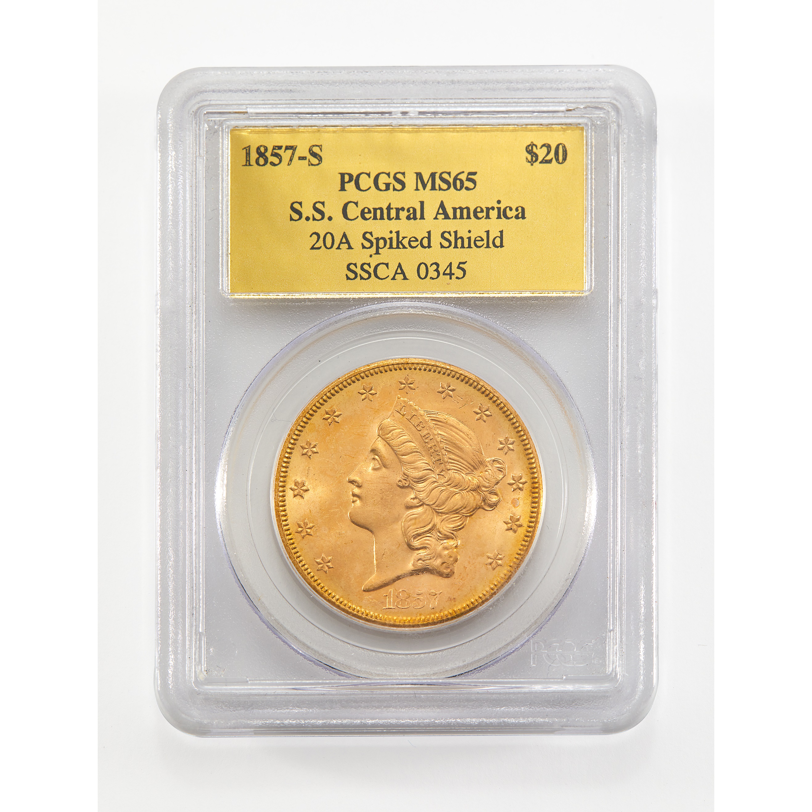 The April 17 sale also features several U.S. coins recovered from nineteenth-century shipwrecks. Most prominent among them is an 1857-S Liberty Head Double Eagle—the design that preceded Saint-Gaudens’—recovered from the wreck of the S.S. Central America, a sidewheel steamer that sank off the coast of the Carolinas in September 1857 carrying millions of dollars of gold coins and bullion from California. Originally named the George Law, the S.S. Central America was owned by the United States Mail Steamship Company and made voyages between New York City and the east coast of Panama. Gold being a chemically inert metal, the salt water caused essentially no damage and, after the initial trauma of the ship sinking, the coins remained inert on the ocean floor for thirteen decades before recovery operations started in the late 1980s. This coin's details and its luster remain almost entirely intact. Professional Coin Grading Service assigned it a Mint State 65 grade, and its Gold Foil holder is highly desirable (lot 28).